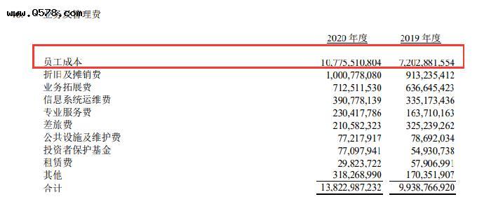 九派财经注意到,据中金公司近年来发布的年报信息,截至2020年12月31日,中金公司员工人数合计9372人,全年员工成本约为107.76亿,人均115万;2019年,中金员工人数为8101人,全年人工成本约为72.03亿,人均89万。一年时间,该公司人均工资涨了30%。