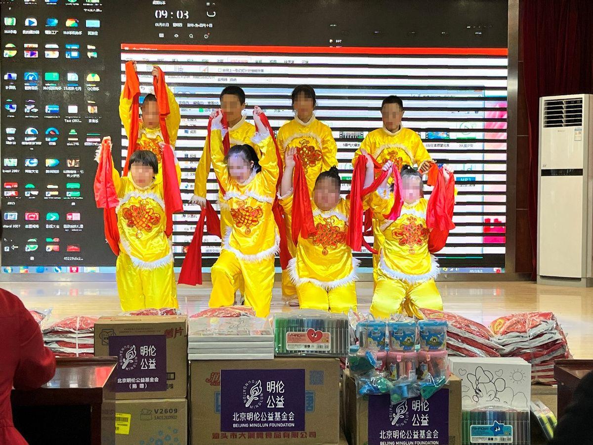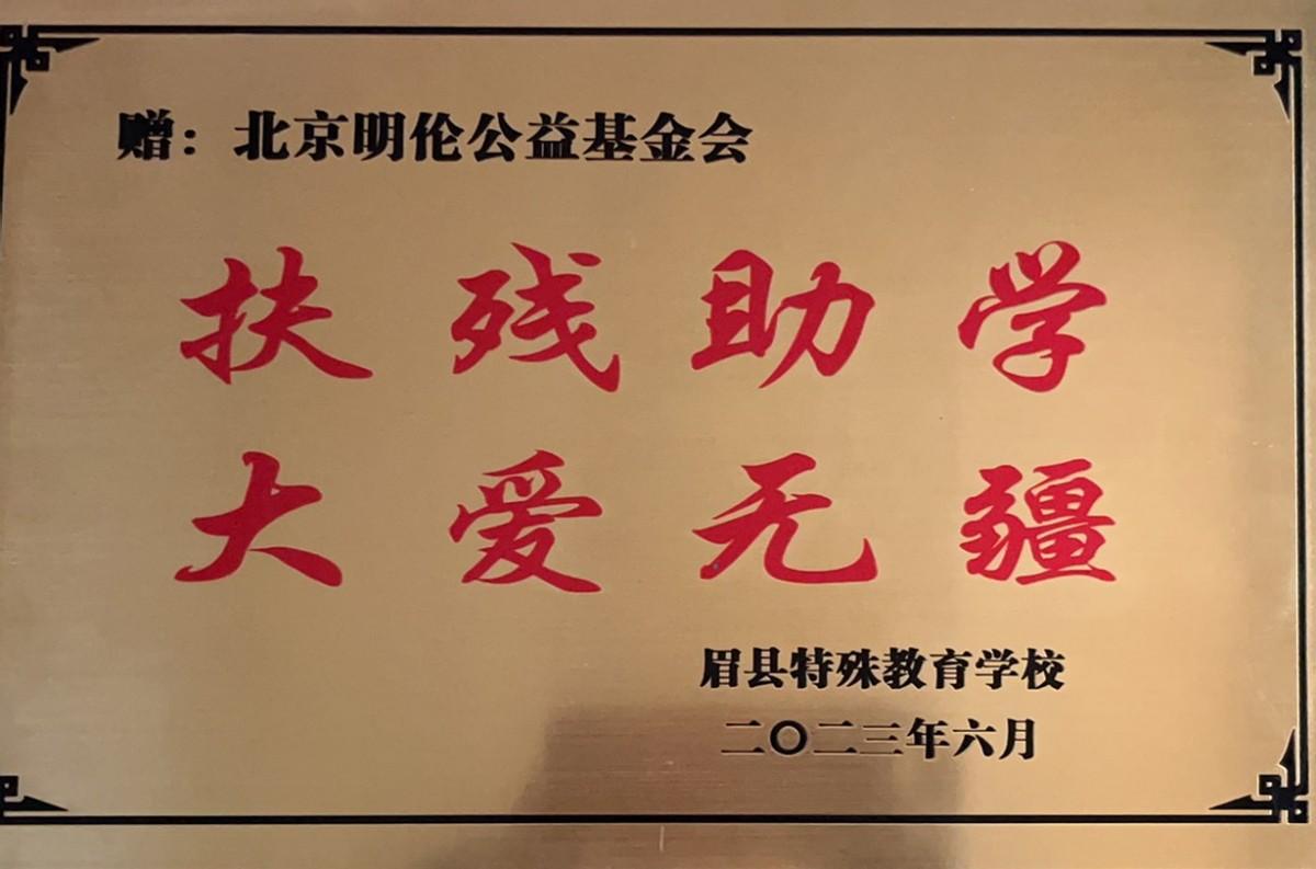 志愿者一行观看了孩子们的表演,并给每一位孩子发放了节日礼物。特教学校向基金会赠送了牌匾表示感谢。