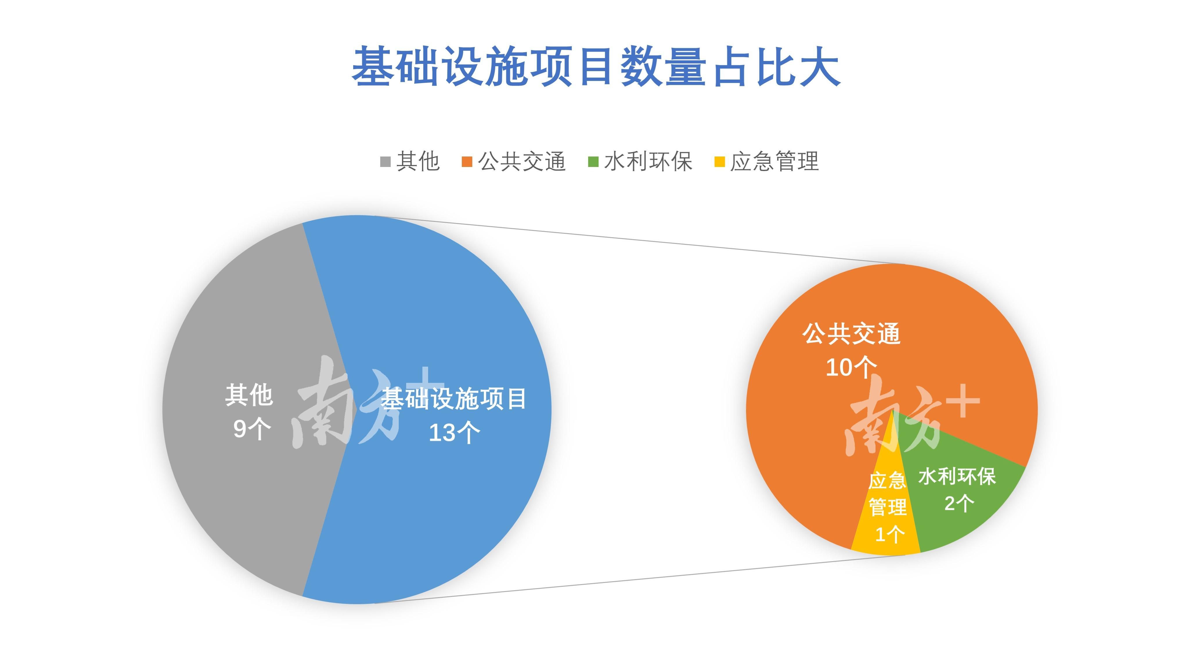 南方日报、南方+记者梳理发现,在22个重大项目工程中,高速公路、铁路枢纽等基础设施项目占比最多。