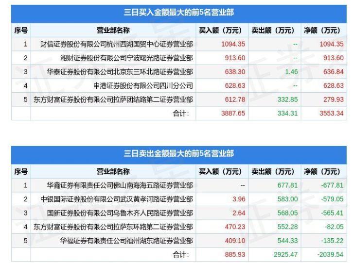 从12月27日公布的龙虎榜数据来看,买入前五名包括财信证券杭州西湖国贸中心营业部、湘财证券宁波曙光路营业部、华泰证券北京东三环北路营业部、申港证券四川分公司、东方财富拉萨团结路第二营业部,合计买入3887.65万元。
