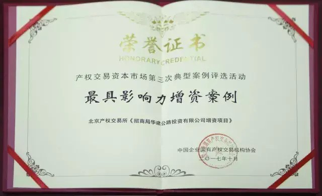 “具有里程碑意义”|招商公路增资项目获中国产权协会“最具影响力增资案例奖”-华建公路投资有限公司