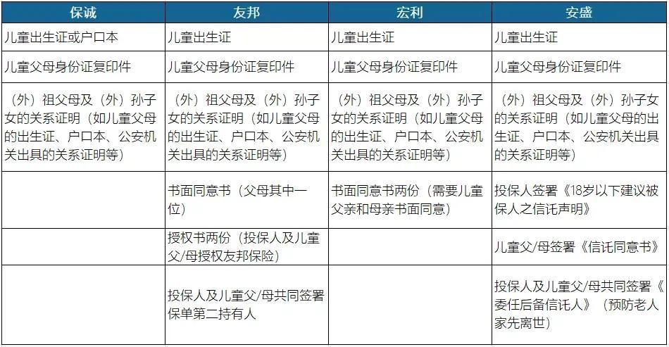在购买儿童保险时,需要准备以下文件:儿童的出生证、儿童父母的身份证复印件、(外)祖父母与(外)孙子女的关系证明(如儿童父母的出生证、户口本、公安机关出具的关系证明等)。此外,投保人需要签署《18岁以下建议被保人之信讬声明》,而儿童的父/母则需要签署《信讬同意书》。为了预防老人家先离世,投保人和儿童的父/母还需要共同签署《委任后备信讬人》。这些文件的准备将有助于顺利购买儿童保险并确保保险权益的顺利转移。