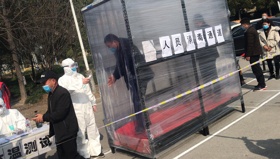 抵达园区,他们要走过喷洒消毒雾气的特殊透明通道,然后在"观察隔离房"进行为期14天的隔离观察,期间每天会有专人进行体温测量、房间消毒和一日三餐的配送。待隔离期结束确认无误后,才能正式返岗。