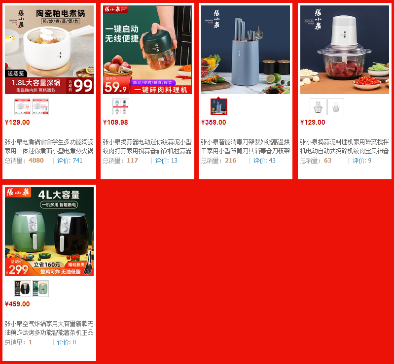 张小泉官网显示,虽然分了多个产品组合类别,但其主要产品仍然集中于刀剪领域,红韵系列开始销售厨具组合。