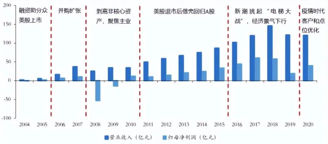 上图就是是分众传媒发展过程的几起几落,很直观的影响了营收的变动。