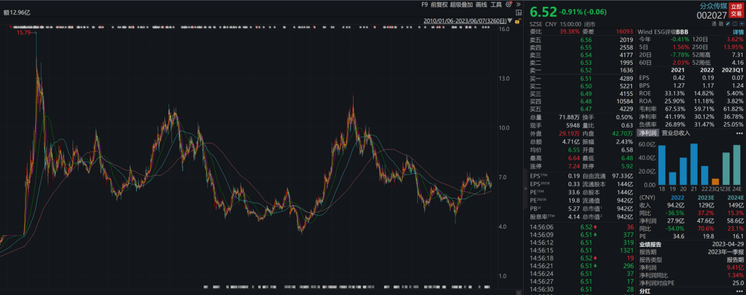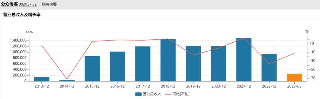 2023第一季度,分众实现营收25.75亿元,同比减少12.40%;归母净利润9.41亿元,同比增长1.34%。