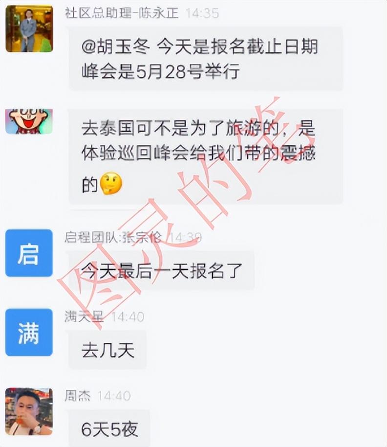 现在项目方准备在5月28号举办峰会,只要武林新贵都可以参加这个峰会,这个就有点意思了的,毕竟很多项目都跑路在峰会前。而且这个项目的峰会地址选和时间都很耐人寻味,6天5夜泰国之行,有哪个公司的峰会开这么长时间啊?而且还基本是全员参加。这项目方不会准备榨干会员的最后一个腰子吧。