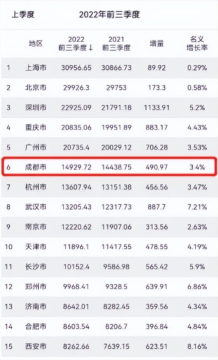 (2022年前三季度各城市GDP对比,数据来源:城市GDP统计)