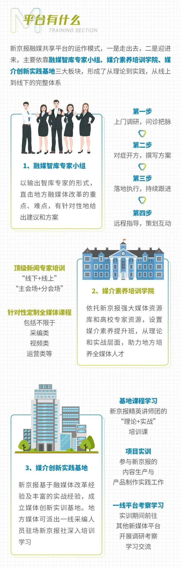 于2022年正式启动,平台涵盖三大板块:融媒智库专家小组、媒介素养培训学院、媒介创新实践基地,汇聚了全国顶尖新闻传播领域专家、知名一线采编和新媒体运营“大咖”,组成智囊团和讲师团,提供融媒体实务经验共享,助力地方融媒体改革。