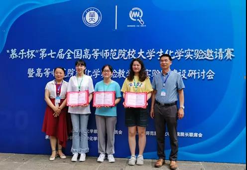7月10日、11日,“慕乐杯”第七届全国高等师范院校大学生化学实验邀请赛暨高等师范院校化学实验教学与实验建设研讨会在武汉华中师范大学举行。本次邀请赛共有北京师范大学、华东师范大学、陕西师范大学、东北师范大学、西南大学等5所部属师范院校在内的38所高师院校114名学生参加。经过激烈角逐,我校被随机抽中的2018级化学(师范)专业3位学生全部获奖:刘依然、成侣莹荣获最高奖一等奖,唐诗韵荣获三等奖。