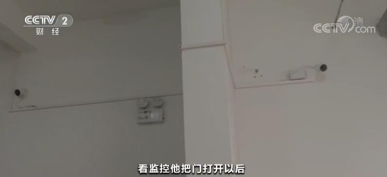 有人问我说你今天上班呢,我说没有啊,他说没有怎么你们售楼部门开着呢,当时我就感觉这个情况不妙,我就开始打电话报警,看监控他把门打开以后,进来就把这个监控插销拔了。