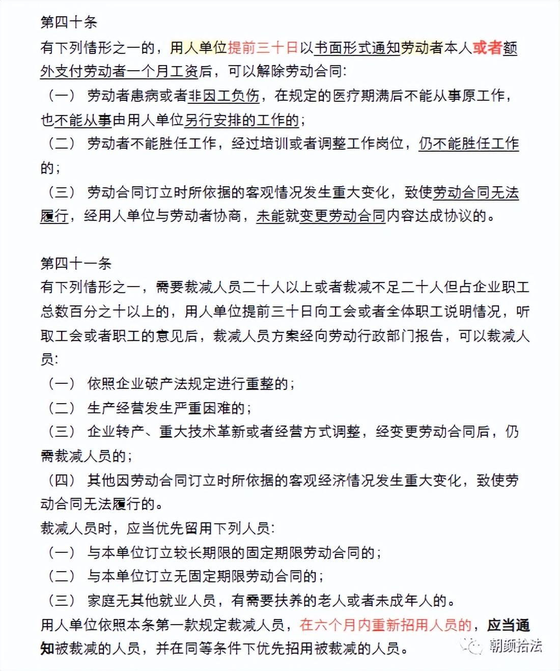 1.用工单位有劳动合同法第四十条第三项、第四十一条规定情形的;