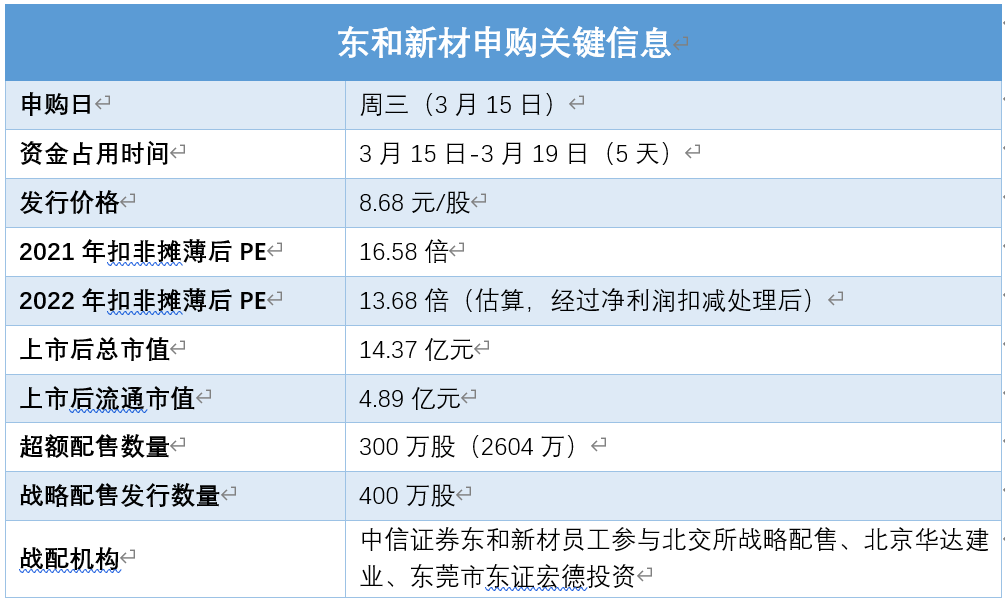 但是公司发行后流通市值较大,达到4.89亿元。综合看东和新材打新值得一搏,合理盈利空间约为10%-20%,但公司中长期投资价值是显著低于康普化学的。
