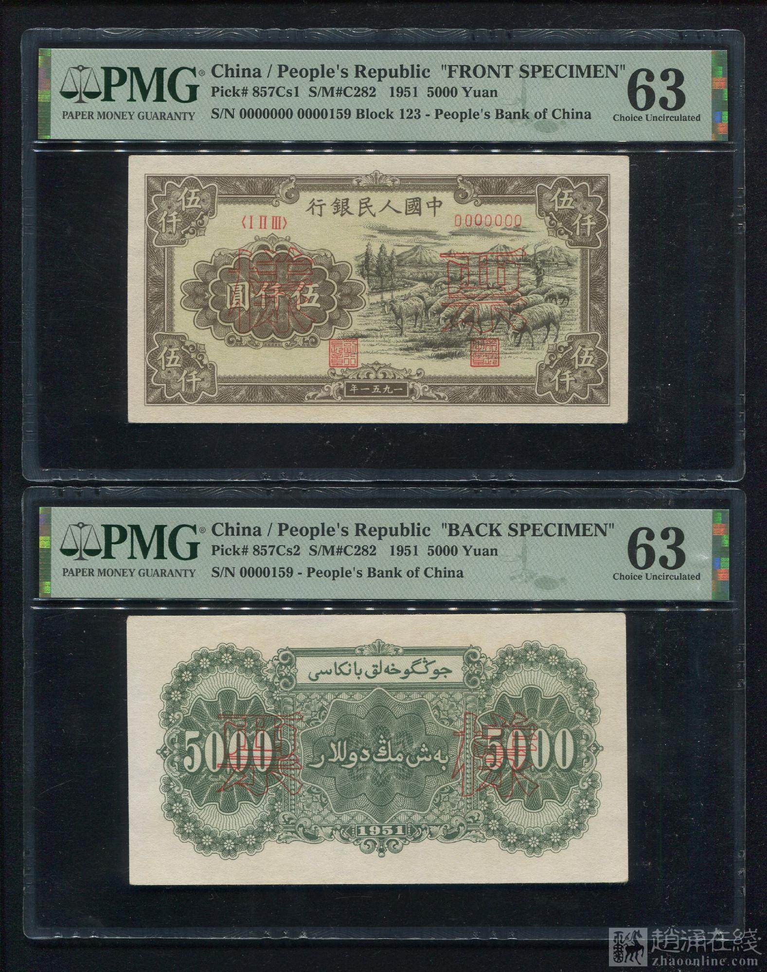 名称:第一版人民币牧羊5000元正反面票样各一枚