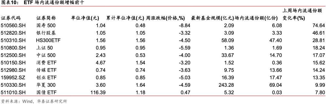 上周国寿500 ETF、易基配售LOF上周场内流通份额增幅较大