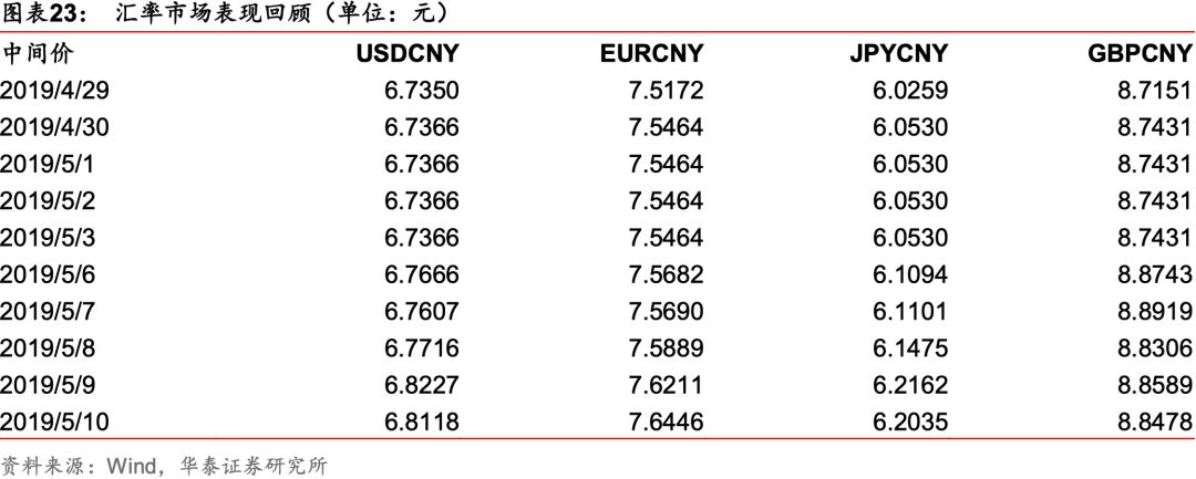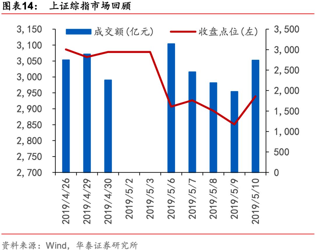 上周(2019/05/06-2019/05/10)A股主要股指下跌后低位震荡,上证综指跌破3000点;十年期国债利率下行,隔夜和1周Shibor利率下跌后上涨,中长期限Shibor利率小幅震荡;伦敦黄金小幅上涨和白银现货价格下跌,金、银价格涨跌幅分别为0.41%,-1.19%;上周人民币兑美元、欧元、日元贬值,兑英镑升值。