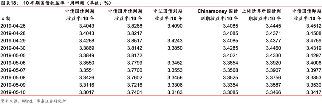 国债收益率方面,以下统计了中债、国开债、中证、Chinamoney和上海清算所国债10年到期收益率,以及中债国债10年即期收益率数据: