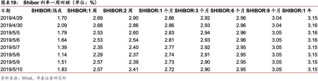 Shibor利率方面,以下统计了隔夜、1周、2周、1个月、3个月、6个月、9个月和1年期限的Shibor利率: