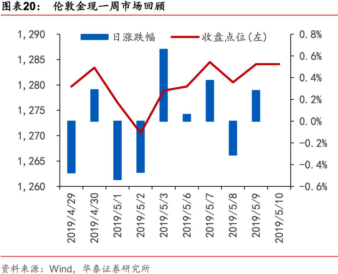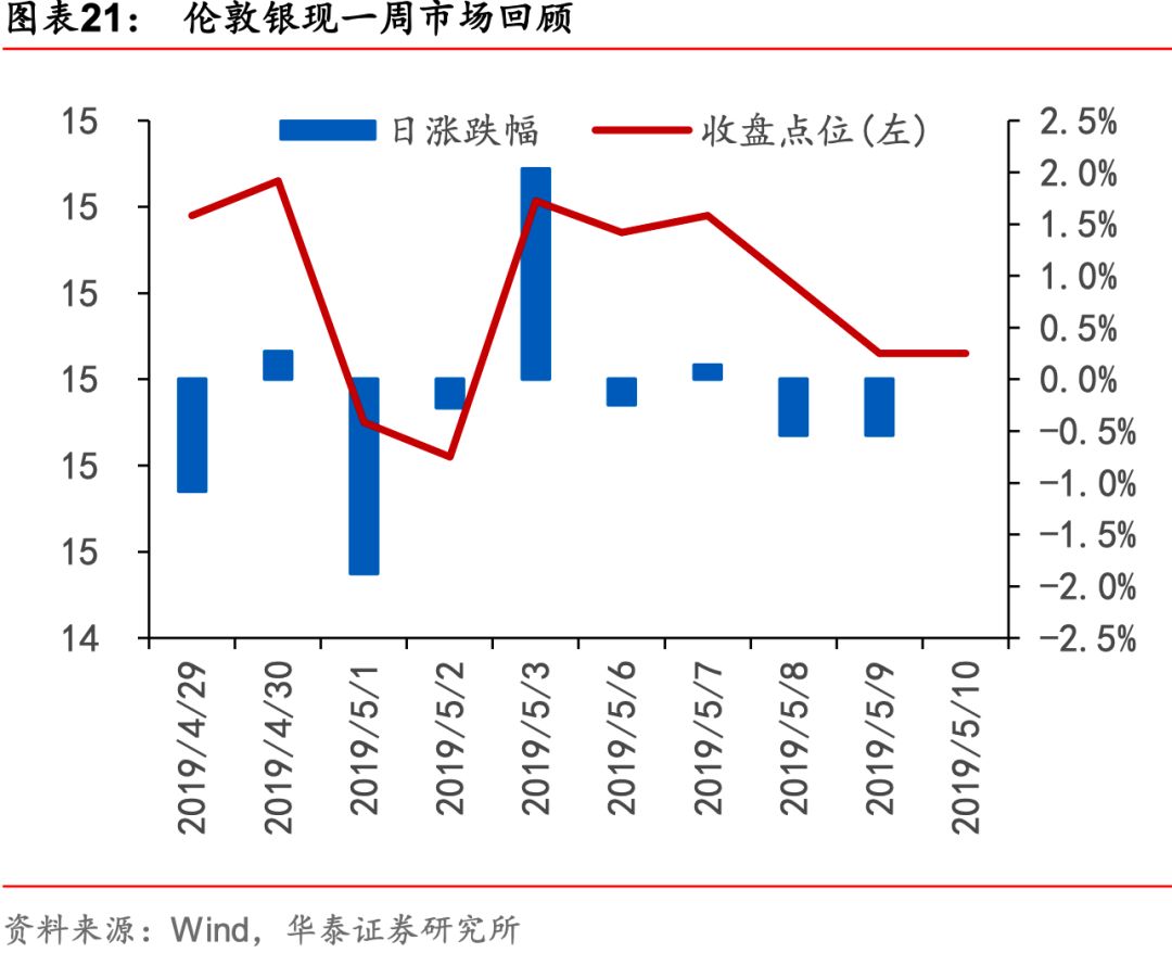贵金属方面,以下统计了伦敦金现和伦敦银现近两周的日涨跌幅与收盘点位: