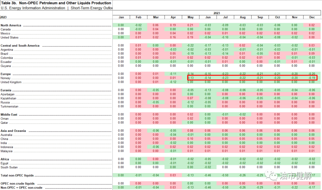 着重下调了非OPEC产量预期,分国家和地区来看,主要是对挪威的产量进行明显下调。