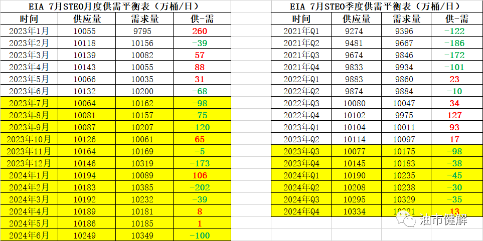 EIA7月月报总体来看继续传递利好。首先从静态平衡表来看,