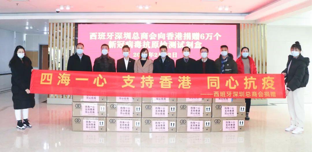 22日上午,西班牙深圳总商会向香港侨媛会、香港侨界社团联会、港澳深圳市侨联联谊会和香港深圳龙华同乡会捐赠了6万个欧盟标准的快速检测试剂盒,价值20万美元。